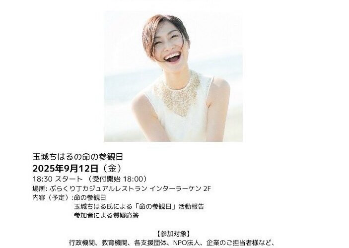 2025年9月12日(金)和歌山県和歌山市にて「命の参観日」を行います。